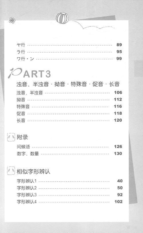 实用的补充内容——书中穿插了丰富而实用的补充知识,包括各种小技巧、相似字形辨认、常用问候语和单词,为下一步的曰语学习打下良好基础。
