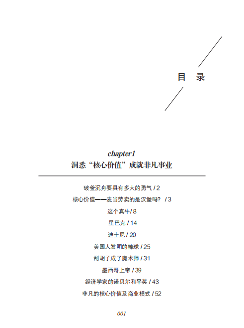 本书作者以一种更高、更广阔的胸怀,更犀利的视角,对许多世界知名企业的成功得失进行剖析,从中总结出几条极为重要的规律,从苹果、麦当劳、星巴克、迪士尼、美国棒球、获诺贝尔奖的经济学家等,揭示了成大商的第一要素是,一个企业的产品要想真正成功,一定要附着核心价值,就是可以给客户带来独特体验的精神价值。