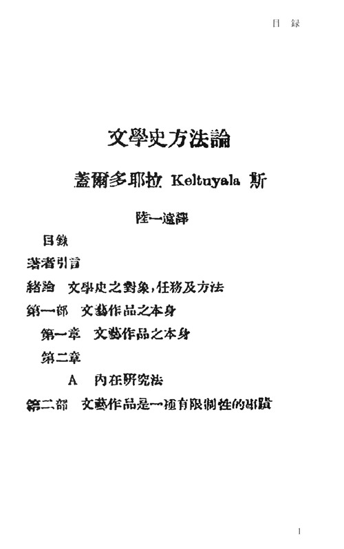 《中国国家图书馆藏·民国西学要籍汉译文献·文学艺术:文学史方法论》依据民国21[1932]乐华图书公司于上海出版的[盖尔多耶拉](Keltuyala)著、陆一远译的图书版本为底本影印复制,编入“民国西学要籍汉译文献”的文学艺术系列。