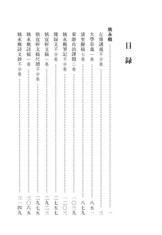 本套丛刊从安徽省图书馆藏桐城派文献中,精选15位桐城派作家的稿本钞本等比影印,为桐城派研究提供重要的第一手资料。本书收录的是姚永概的稿本钞本。具体包括:《左传讲义》不分卷、《大学章义》一卷、《清史拟稿》七卷、《东游自治译闻》二卷、《姚永概笔记》不分卷、《杂录文》不分卷、《姚永概诗文钞》不分卷、《慎宜轩文稿》一卷、《慎宜轩文稿尺牍》不分卷、《姚永概诗钞》一卷。姚永概长于文学、工诗,其散文被吴汝纶等名家誉为“才气俊逸,议论宏肆,虽百钓万斛,运之甚轻”。此次出版是对姚永概作品的全面展示,为学界深度研究其生平、学问、思想等提供不可多得的宝贵资料。