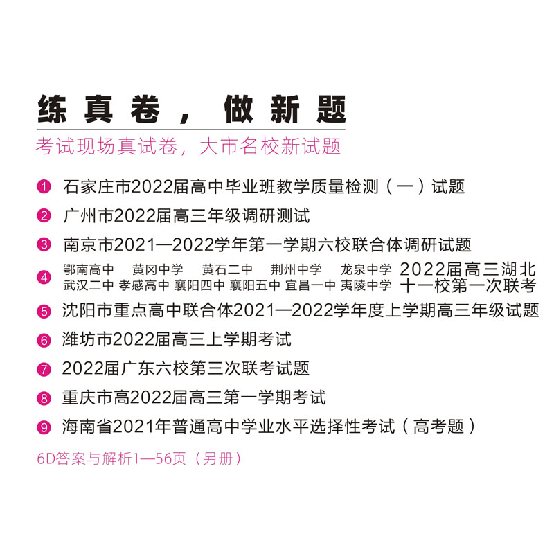 金考卷第5期,精选2021年11-12月高三大市高质量联考卷,帮你了解更新命题动向,充分备考一模。都说一模试卷难度更接近高考难度,都说一模成绩更接近高考成绩,一模前备考,请尽力做到更好,不留遗憾!