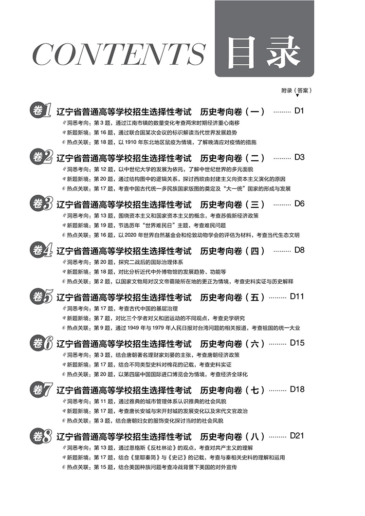 高考必刷卷 考向卷 命题聚焦名校名师原创命制 历史(辽宁专用)