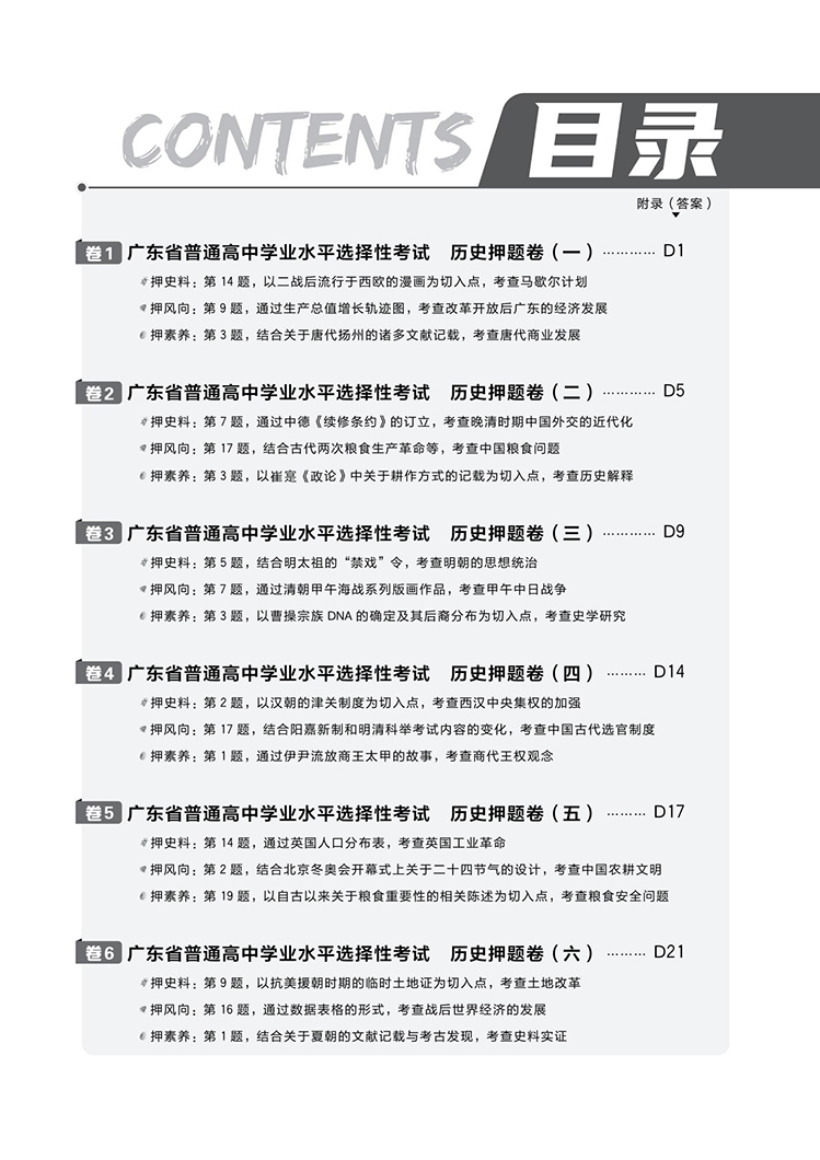 高考必刷卷押题卷 考前冲刺提分 历史(广东专用)2022新高考 理想树