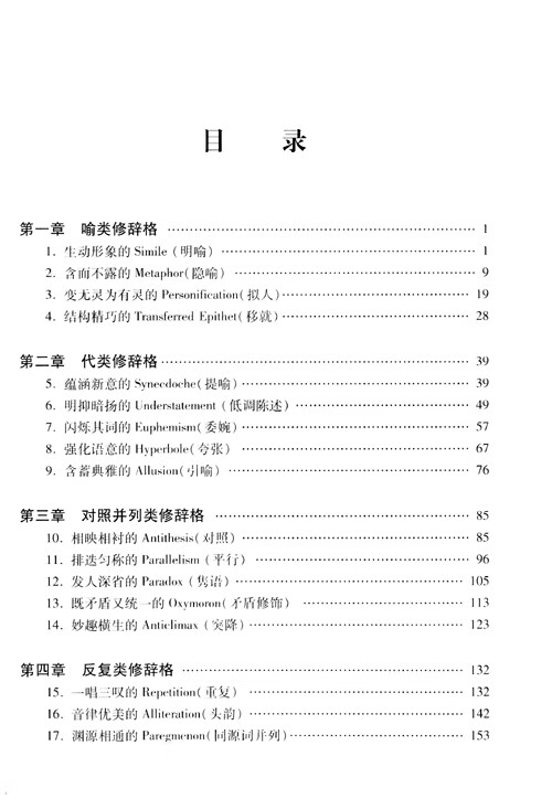 对每一辞格从定义、源流、表现方法、成格结构、修辞效果等角度详加论述,并与汉语相同或类似的辞格进行比较研究;