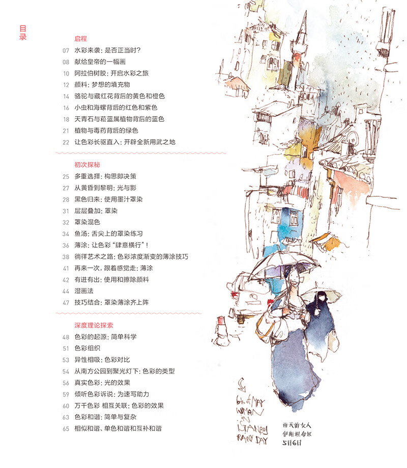 没有枯燥的技法教学,只有实用、有趣的水彩小贴士;没有死板的“三大定律”或“八大法则”,只有诚意满满的经验分享;没有“十天速成”的空头承诺,但能保证你看完后更爱水彩,也更懂如何驾驭它。