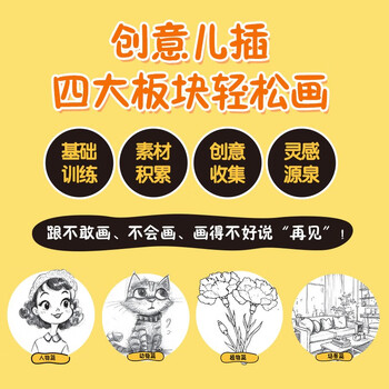 这是一本以铅笔画风格为主的儿童插画临摹图集,简洁且富有表现力,带你走进丰富的创意世界。