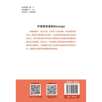 本书主要分为专事之爱、美物之爱、挚友之爱、情性之爱和化外之爱五部分,以精简干练的语言,搭配幽默诙谐的插图,对人在生命里可能会面对的各种“爱”进行剖析,作者希望通过本书告诉年轻人成长过程中“热爱”的重要性,教会他们如何培养和保持这种热爱。