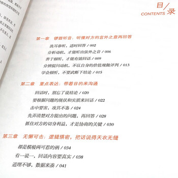 回话是人际交往中一门重要的沟通技术,也是让你行走社会赢得成功的技能。回话不仅体现了一个人的口语表达能力,也展现了一个人灵活应变的论辩智慧和反驳技巧。本书层层深入,条分理析,以精练生动的语言,配合生动有趣的漫画,详尽讲解了人生各种场合的回话方式和回答技巧。比如,如何听出对方的话外音投其所好地回答;如何察言观色随时调整回话;如何以问代答占据主动;如何依对方的性格选择回话方式等等。通过本书,读者能够在短时间内学会各种回答技巧,极大地提升自己的回话能力,从而游刃有余地应对种种重要、疑难、复杂的工作和生活。