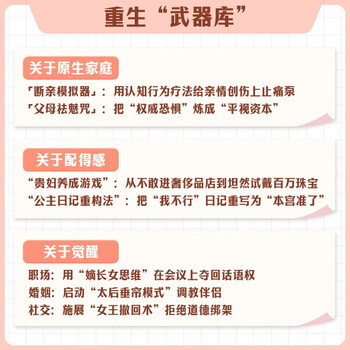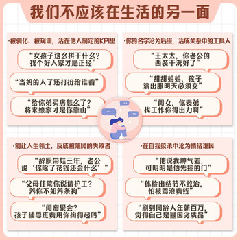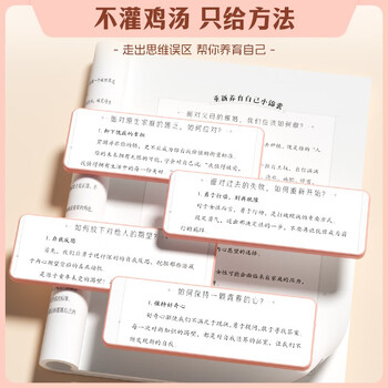 《重新养育自己》是一本专为女性打造的实用书籍。它深入剖析了女性在成长过程中面临的诸多关键问题。原生家庭方面,帮助女性梳理家庭带来的影响,找到疗愈与成长的路径。自律章节提供切实可行的方法,让女性学会自我管理,提升生活品质。并鼓励女性自信,发现自身闪光点,勇敢展现自我;好好爱自己,关注自身需求,给予自己温暖与关怀。不内耗的指导能让女性摆脱精神困扰,更加从容地面对生活。而给自己配得感能助力女性勇敢追求更好的生活与未来。本书通过丰富的案例和具体的建议,引导女性在各个方面重新养育自己。无论是在人际关系、职业发展还是个人成长中,都能为女性提供有力的支持和指引,帮助她们成为更强大、更自信、更幸福的自己。