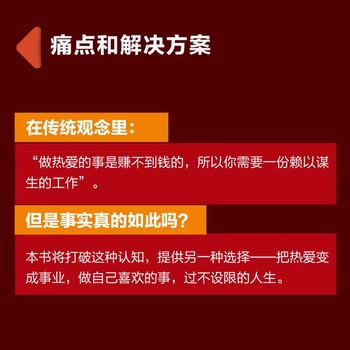 将热爱转化为事业并非魔法,而是有方法可循。这本书里,凯莉会借助自己和身边人的故事,告诉你怎么找到方向、怎么设计产品、如何销售、如何借力社交媒体撬动增长。非常实用,也很走心。