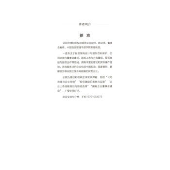 《公司股权设计与股东权利保护》是股权领域一本百读不厌的佳作,它以诙谐幽默的口吻、经典翔实的案例,不仅为读者提供了专业的知识和实用的建议,还努力帮助读者规避股权风险,实现企业的健康发展。无论是初创企业的创业者,还是成熟企业的管理者,抑或是投资者,都能从中受益匪浅,相信《公司股权设计与股东权利保护》一定能成为企业家和管理者在股权领域的得力助手。
