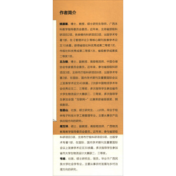 周万洋,硕士,副教授,高级物流师,广西物流教育教学指导委员会委员。近年来,参与省部级科研项目3项,主持市厅级科研项目9项,出版学术专著1部,在国际、国内学术期刊及重要国际会议上发表学术论文30余篇,多次指导学生参加省市大学生物流设计大赛获二、三等奖。