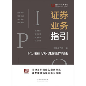 本书按照A股IPO的核查要求、核查要点、核查方式、审核要点及案例总结的撰写体系,对律师如何进行IPO法律尽职调查进行实务分享,并结合国枫证券法律业务专题实务培训课程,是理论与实践相结合的IPO尽职调查实用手册。