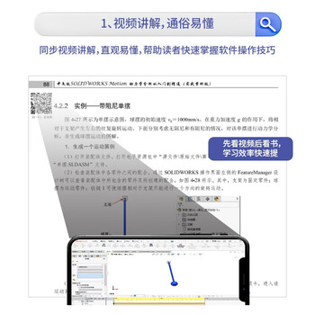 为了方便读者学习,全书实例都录制了教学视频。视频录制时采用模仿实际授课的形式,在各知识点的关键处给出解释、提醒和注意事项,让读者在高效学习的同时,更多体会 SOLIDWORKS Motion 功能的强大。