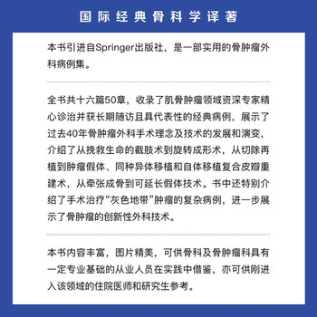 本书是一部对已有一定专业基础的骨科及骨肿瘤科相关从业人员非常有指导意义且较为实用的骨肿瘤外科病例集,对刚开始接触本专业的住院医师和研究生也有很大帮助。本书编者均为肌骨肿瘤领域的资深大家,他们治学严谨,精益求精,志存高远。书中所呈现的病例均为他们自己精心诊治并获长期随访的经典病例,内容严谨、丰富、翔实,图片清晰、精美。
