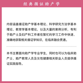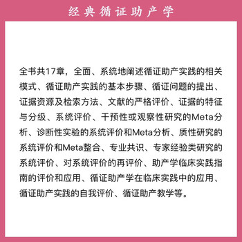 为将最前沿的科学理论有效地用于指导助产实践,在助产学领域开展循证实践,以实现助产专业的规范化、可持续化发展。本书将现代科学循证理论融入产前、产中、产后,采用个案的形式进行分解和系统连贯的总结,采用通俗易懂的科学循证理论来诠释助产实践,内容前沿、新颖、实用。全书共 17 章,全面、系统地阐述循证助产实践的相关模式、循证助产实践的基本步骤、循证问题的提出、证据资源及检索方法、文献的严格评价、证据的特征与分级、系统评价、干预性或观察性研究的 Meta 分析、诊断性实验的系统评价和 Meta 分析、质性研究的系统评价和Meta整合、专业共识、专家经验类研究的系统评价、对系统评价的再评价、助产学临床实践指南的评价和应用、循证助产学在临床实践中的应用、循证助产实践的自我评价、循证助产教学等,内容涵盖循证助产学基本理论、科学研究方法学基本理论、教育学基本理论,以及大量的案例分析,有利于助产士及妇产科工作者在繁忙的学习工作中能快速准确地获取相关循证学知识,在临床融会贯通。本书主要面向助产学专业学生,同时也可以为临床助产士、助产教育人员及女性健康相关职业人员提供循证实践指导。