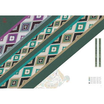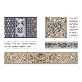 《敦煌壁画·纹样》一书选取莫高窟第009窟、第061窟、第103窟、第159窟、第321窟以及榆林窟第003窟壁画中边饰、藻井、服饰、装饰物等上的纹饰,并进行手绘临摹上色。书中还对纹样中的颜色进行提取,组合成色板进行展示,方便专业人士使用。此外,作者还有针对性地挑选了壁画中有特色的纹样采用与壁画中原纹样不同的配色进行重新填色,不仅带来与众不同的观赏体验,还为艺术设计专业的学生和从业者提供了新的创作灵感。