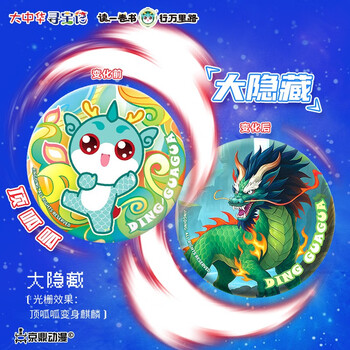 该徽章系列根据经典IP“大中华寻宝记”打造,主角人气神兽置身梦幻背景开展幻想派对,打造惊喜收藏体验。Q版神兽造型设计,常规款、隐藏款搭配不同镭射效果,包装设计精美,具有收藏价值。