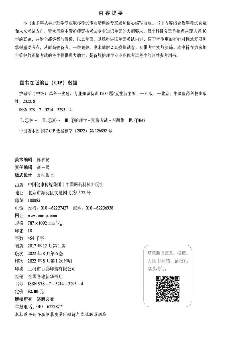 护理学(中级)单科一次过——专业知识特训1200题(第六版)(2023护考应急包)