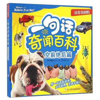 “这是真的吗一句话奇闻百科”队轻松阅读、开拓视野为出发点,利用精练有趣的文字,向小读者展亍无奇不有的六千世界。为了激发他们的阅读兴趣,降低阅读难度,丛书尽量采用*少的文字来阐述奇闻趣事。