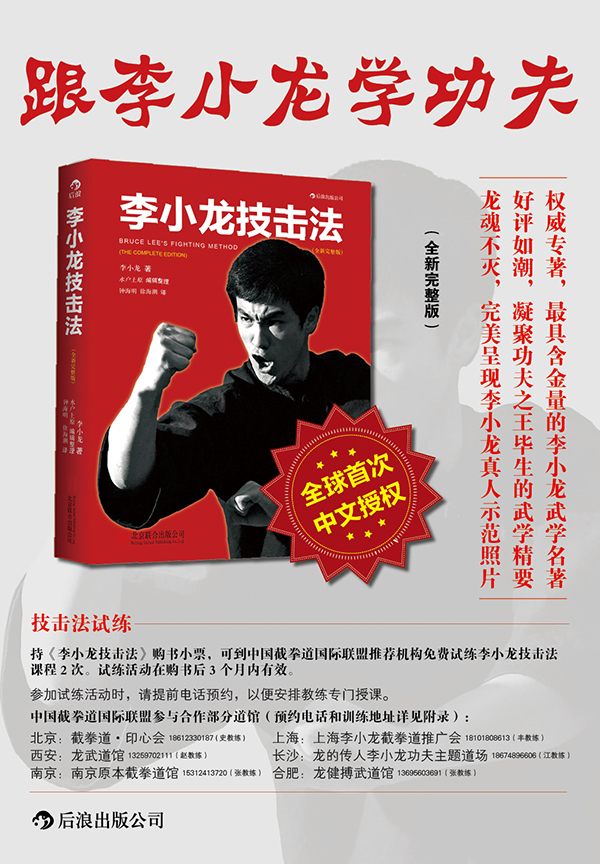 2013年11月23日到1月31日,凡在京东购买《李小龙技击法》一书,凭购书凭证,可到截拳道·印心会免费体验学习截拳道课程2次;体验活动在购书后三个月内有效。