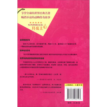 ★我非常喜欢“杜利特医生”这样的作品,孩子们就应该爱看这样的作品,可以从中学习体会如何与大自然和谐相处的方法。