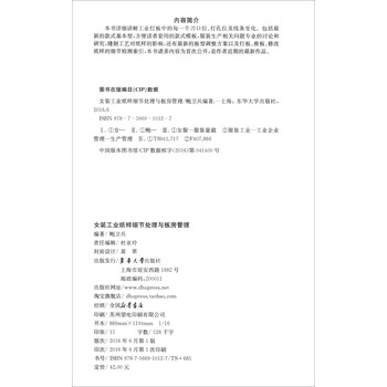 《女装工业纸样细节处理与板房管理》详细讲解工业打板中的每一个刀口位、打孔位及线条变化。包括新的款式基本型,方便读者套用的款式模板,服装生产相关问题专业的讨论和研究,缝制工艺对纸样的影响,还有新的板型调整方案以及打板、推板、修改纸样的细节检测索引,《女装工业纸样细节处理与板房管理》诸多内容为首次公开,是作者近期的新作品。