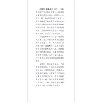马塞尔·普鲁斯特(1871—1922)在法国乃至世界文学史上占据着极其重要的地位。他在小说创作中实现了一场“逆向的哥白尼式革命”:人的精神重又被安置在天地的中心;小说的目标变成描写为精神反映和歪曲的世界。他改变了小说的传统观念,对日后形形色色新的小说流派的出现,产生了深远的影响。