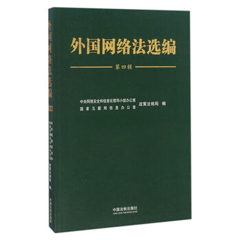中央网络安全和信息化领导小组办公室、国家互联网信息办公室政策法规局编的《外国网络法选编(第4辑)》为“外国网络法选”丛书中的一本,内容涵盖了美国建国后的《电信法》《互联网免税法》《数字千年版权法》《统一电子交易法》《电子隐私权法》《反网络域名抢注消费者保护法》《青少年互联网保护法》《互联网虚假身份证明防范法》《反垃圾邮件法》《互联网博彩管理法》等法案,对我国相关领域的立法有着很好的参考和借鉴意义,对于该领域的学术研究和实务工作也有着很好的参考价值。