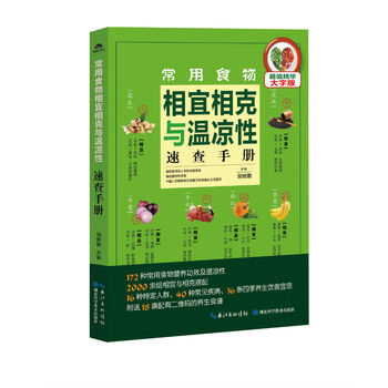 《常用食物相宜相克与温凉性速查手册(超值精华大字版)》共分为4个部分,第一部分精选了172种日常生活中最常用的食材,包括菜类、肉禽类、蛋奶类、水产类、菌菇类、水果类、干果类、粮豆类、饮品类、调料类和中药材,详细介绍了其性味、营养成分、食疗功效、选购及贮存要点、适宜人群和不宜人群,并列举出了每种食材的相宜搭配与相忌搭配,以及相宜相忌的原因;第二部分介绍16种特定人群的饮食宜忌,针对每一种人群的身体特点,推荐了相应的饮食原则,并列举出宜吃的食物和忌吃的食物;第三部分介绍40种常见疾病的宜吃食物和忌吃食物,将饮食宜忌细化为类,每一类下列举出相应的食物,以便患者针对具体的症状,更加清晰地掌握挑选食物的原则。第四部分主要讲述四季饮食食生的宜忌知识。书中尽可能地考虑到各类人群和疾病患者的具体需要,希望为读实现合理膳食尽一些绵薄之力。本书的另一特点是将每一种食物的温凉性做出了非常清晰而明显的标注,将食物的寒、凉、平、温、热等性质做成醒目的LOGO,使您一眼就能看到,也因此实现了本书成为一本“速查手册”的目标,希望能为您节省宝贵的时间。