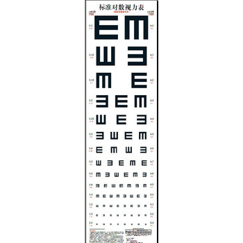 本视力表严格按照新版国家标准(GB11533-2011)要求设计、印制,搭配赠送新版眼保健操示意图1张。本视力表较旧版标准对数视力表有以下几点改动:①首行视标由原来的单个视标增加为2个视标;②视标的朝向由原来相邻的两个视标朝向可以相同,改变为现在的相邻两个视标朝不能相同;③要求左侧列小数记录值,右侧列5分记录值;④使用说明要求加上校正表和换算表。