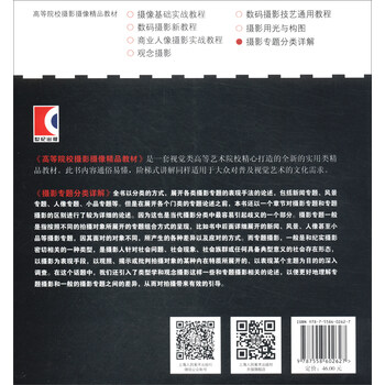 《摄影专题分类详解/高等院校摄影摄像精品教材》以分类的方式,展开各类摄影专题的表现手法的论述,包括新闻专题、风景专题、人像专题、小品专题等。但是在展开各个门类的专题论述之前,《摄影专题分类详解/高等院校摄影摄像精品教材》还以一个章节对摄影专题和专题摄影的区别进行了较为详细的论述。因为这也是当代摄影分类中*容易引起歧义的一个部分。摄影专题一般是指按照不同的拍摄对象所展开的专题组合方式的呈现,比如书中后面详细展开的新闻、风景、人像甚至小品等摄影专题,因其面对的对象不同。所产生的各种差异以及应对的方式。而专题摄影,一般是和纪实摄影密切相关的一种类型,是摄影人针对社会问题、社会现象、社会族群或任何具备典型意义的社会存在形态以摄影为表现手段,以观照、揭示或批判拍摄对象的某种内在特质所展开的、以表现某个主题为目的的深入调查。在这个话题中,我们还引入了类型学和观念摄影这样一些和专题摄影相关的论述,以便更好地理解专题摄影和一般的摄影专题之间的差异,从而对拍摄带来有效的引导。