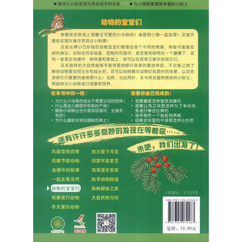 带领小读者踏上探索自然秘密的神奇之旅。从学会追踪一只野兔,到翻开石块仔细观察昆虫的触须;从可爱的动物宝宝到黑夜里稀奇古怪的动物;从放大镜下奇妙的发现到海滩上拾到的珍奇异宝;从如何辨别东南西北到风霜雪雨四季……书中还有亲切的小贴士,为小读者提供详细的指导和建议,更有亲自动手的小实验。这是一本为专为小探险家准备的指导手册,快带上它出发吧!本丛书包含大量风格清新的手绘图片,将各种有趣的动物描绘得栩栩如生,配上轻松幽默的文字说明,让小读者捧起来就舍不得放下!