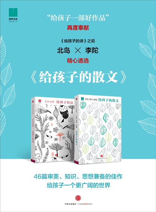 “为孩子留下一部作品”,“读散文就像穿越田野,无边无际,遍地花开。合上书打开书,我们眼前会展开更广阔的世界。”《给孩子的散文》作为开放性的经典散文选本,因编者北岛和李陀的眼光与热忱,品质的特出和优异,势必在汉语世界产生广泛、持久而巨大的影响。