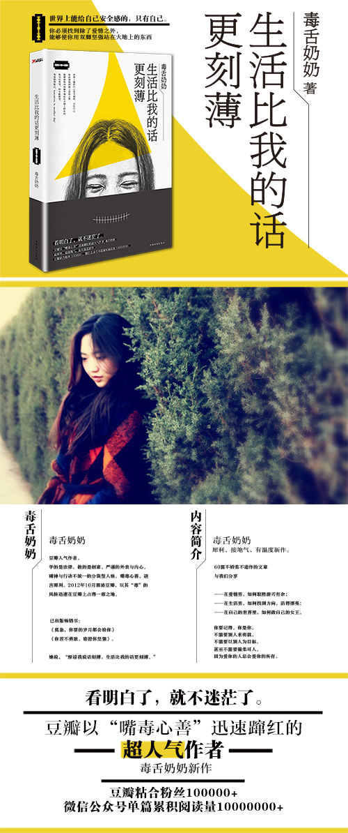 “嘴毒心善”蹿红豆瓣、微信、微博的人气作者,犀利女神颜值担当毒舌奶奶,接地气、有温度的全新作品。