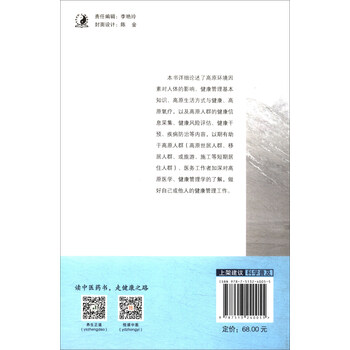 《高原人群的健康管理》详细论述了高原环境因素对人体的影响、健康管理基本知识、高原生活方式与健康、高原氧疗,以及高原人群的健康信息采集、健康风险评估、健康干预、疾病防治等内容,以期有助于高原人群(高原世居人群、移居人群、或旅游、施工等短期居住人群)、医务工作者加深对高原医学、健康管理学的了解,做好自己或他人的健康管理工作。