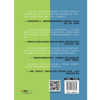 对服务的价值和目标进行了全新的解释和定义,并且在服务满意和客户购买之间建立了链接,特别是书中的观点,模型和工具都体现了作者所强调的“柔性沟通”,这不管对服务还是销售而言,都尤为重要。本书的创新之处在于将客户沟通区分成两个层面,即迎合性沟通和引导性沟通,并以之作为两个隐藏在整个流程中的齿轮,成功驱动服务逐步向销售顺利过渡。