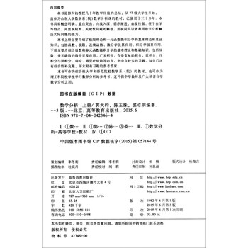 《数学分析(第3版 上册)》可作为综合性大学和师范院校数学系(院)的教材,也可作为理工科院校学生学习数学分析的参考书,还可供中学教师及广大读者自学数学分析之用。