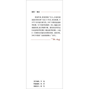 ★生气勃勃,无忧无虑,和善可亲。彼得·梅尔对于食物和乡村氛围的描述没有辜负他的声望。