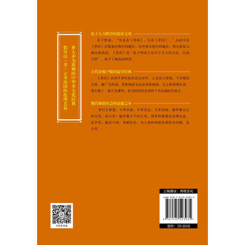 《中华传统文化核心读本:孝经全集》以解读古代家喻户晓的儒学经典《孝经》为切入点,配以古代及现当代流传的孝道故事,力求使读者在轻松阅读中去粗存精,领略传统孝文化的积极意义与思想真谛。