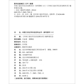 《中国工农红军长征史料丛书:参考资料(4)》分“国民党军围堵南下川康边区的红四方面军”、“国民党军追堵红二、六军团长征”、“国民党军堵截红军三大主力会师”3个专题以及附录。