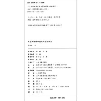 《高校人文社科研究论著丛刊:大学英语教学改革与创新研究》理论观点清晰新颖,实践论述详尽实用,不仅做到了理论与实践的有机结合,也体现了新的研究方向与成果。此外,《高校人文社科研究论著丛刊:大学英语教学改革与创新研究》内容十分丰富,无论是从教学思想、教学模式、教学策略、教学评价方面,还是具体的语言基础教学和技能教学方面,《高校人文社科研究论著丛刊:大学英语教学改革与创新研究》都提出了相应的改革措施和要求,同时还对大数据时代教师的自身发展问题进行了深入的探讨。此外,《高校人文社科研究论著丛刊:大学英语教学改革与创新研究》结构严谨合理,语言通俗易懂,便于读者阅读和理解。因此,对于教师的教学、学生的学习以及相关专业人士的研究来讲,《高校人文社科研究论著丛刊:大学英语教学改革与创新研究》有着重要借鉴意义和价值。