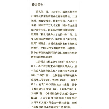 黄兆信,男,1971年生。温州医科大学社科处处长兼创新创业教育学院院长、二级教授、教育学博士、博士生导师。入选长江学者、国家百千万人才工程、国家有突出贡献中青年专家、国务院政府特殊津贴专家、教育部“新世纪优秀人才支持计划”等。主要从事创业教育研究,率先提出“岗位创业教育”新理念,多项成果被国家和省部级采纳推广,并100余次受邀到教育部、科技部、团中央等组织的国际国内会议及高校作创业教育专题报告和讲学。