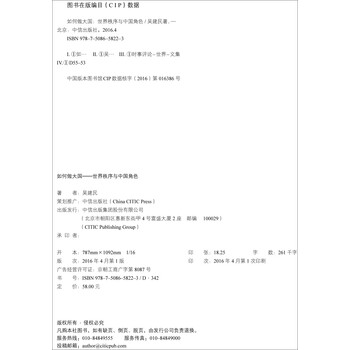 基辛格《世界秩序》引发了全球格局的大讨论,中国作为新世界秩序的塑造者之一,该如何消除别国的疑虑,顺利实现和平崛起?如何在经济地缘外交上准确定位,承担起一个大国的担当?资深外交家吴建民全新力作《如何做大国:世界秩序与中国角色》,探讨从硬实力到国民素质,每个人都应该一读!