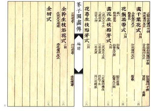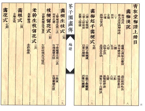 《中国经典书画丛书·芥子园画传:梅谱》共分三集,囊括了山石、树木、人物、屋宇、梅、兰、竹、菊、草虫、花卉及禽鸟,每集首列画法浅说,或画法歌诀,次摹诸家画式,末为摹仿名家画稿。一草一木、一笔一墨,循序渐进,浅显易懂,从局部到整体循循善诱,给人以具体的入门途径,极便初学者入手。一八一八年书坊又将丁皋《写真秘诀》一卷及择选《晚笑堂画集》等人物画谱中的图绘编撰成《仙佛图》《贤俊图》《美人图》三卷,合刻刊印成第四集的人物画谱。并提出绘画『启人逸致,夺造化而移精神』的艺术观念,认为『画至于神,能事毕矣,岂有不自然者』。认为『神』必须建立在形的基础上,以形写神,形外而神内。