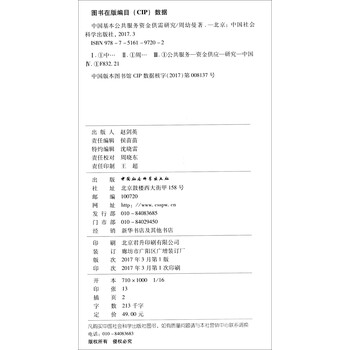 推进基本公共服务均等化的核心问题是资金问题,但目前对资金问题进行深入、定量分析的文献较少。《中国基本公共服务资金供需研究》对基本公共服务资金问题进行系统的定量研究,对资金供给规模的绩效进行实证考察,运用多种计量经济学方法测算出我国2015-2020年基本公共服务资金需求量和供给量,计算资金供需缺口。最后,在借鉴国际经验基础上,跳出现有的财政收支格局,从构建全面统筹和整合国家综合财力资源的角度提出弥补我围基本公共服务资金缺口的思路。《中国基本公共服务资金供需研究》从资金供需的视角深化了对基本公共服务问题的研究,为国家相关决策提供科学、可靠的依据和参考,为拓展基本公共服务资金来源,加快推进基本公共服务均等化提供了一个新思路。