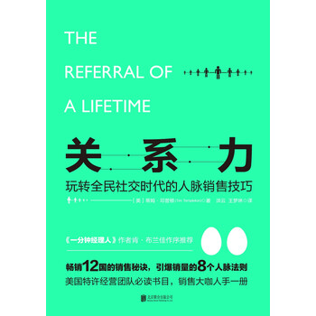 《关系力》是销售领域的《一分钟经理人》。通过通俗易懂的故事,作者讲诉了人们应该如何打动客户、向客户销售产品的永恒原则。本书提供了一套循序渐进的体系,通过持续不断的合适推荐,同时不断拓展与现有客户之间的业务,能让所有人获得源源不断的新商机。蒂姆.邓普顿强调了把黄金法则应用到业务中的重要性,即把客户的关系放在首位,而不仅仅只是推销产品。
