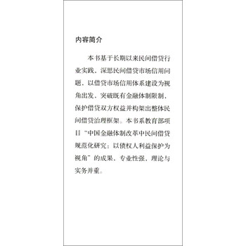 《中国金融市场化改革中民间借贷规范化研究:以债权人利益保护为视角》: