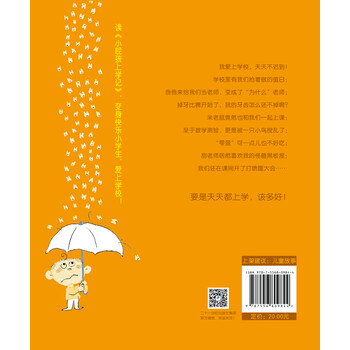 我爱上学校,天天不迟到!学校里有我们抢着做的值日;爸爸来给我们当老师,变成了"为什么"老师;掉牙比赛开始了,我的牙齿怎么还不掉啊?米老鼠竟然也和我们一起上课;至于数学测验,更是被一只小鸟搅乱了;"零蛋"可一点儿也不好吃;甜老师居然喜欢我的怪兽黑板报;我们还在课间开了打喷嚏……要是天天都上学,该多好!