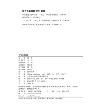 中国是一个拥有五千年灿烂文明史,充满生机与活力的泱泱大国。中华文明源远流长,历史曲折而厚重,其间发生的历史事件、出现的历史人物错综复杂、头绪繁多,要从总体上把握中国历史的发展进程并不是一件容易的事情。 为了帮助读者在较短时间内了解中国历史进程,丰富知识储备,我们精心编撰了这部《中国通史》,以时间为序,分为华夏源头、中原争霸、九州一统、离析与交融、乾坤变幻和王朝更迭六大篇章,精彩扼要地勾勒出中国历史演进的基本脉络,系统介绍了中国历目前的重大事件、风云人物、辉煌成就、灿烂文化等内容,力求在真实性、趣味性和启迪性等方面达到一个新的高度,并通过科学的体例与创新的版式,多方面、新视角、多层面地阐释中国历史。 本书还精心选配了数百幅内容涵盖面广、表现形式丰富的图片,包括出土文物、历史遗迹、战争示意图、名人画像等,与文字内容互为补充与诠释,使读者仿佛置身于一座真实立体的历史博物馆,更加直观地了解中国历史。